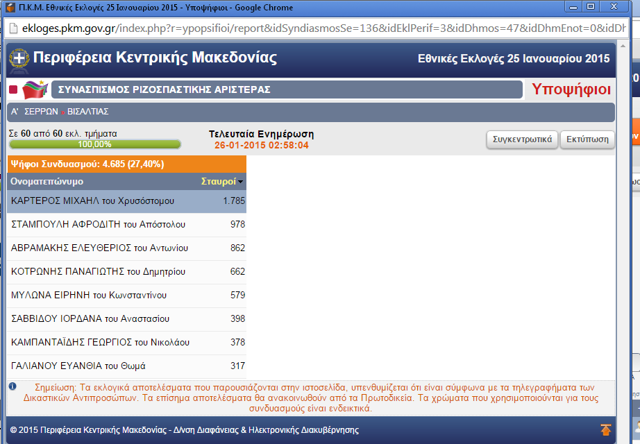 ΕΚΛΟΓΙΚΑ ΑΠΟΤΕΛΕΣΜΑΤΑ ΒΙΣΑΛΤΙΑΣ, ΣΕΡΡΩΝ ΚΑΙ ΟΛΗΣ ΤΗΣ ΚΕΝΤΡΙΚΗΣ ΜΑΚΕΔΟΝΙΑΣ